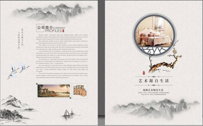 內(nèi)頁內(nèi)容布局基本可以按照“公司介紹-產(chǎn)品/服務介紹-案例展示-設計團隊-聯(lián)系方式”。因此,在內(nèi)頁第一部分,應當突出公司的規(guī)模,誠信與水平。這一段屬于比較嚴謹?shù)牟糠?,所以,應當貼近公司的實際情況進行描述。宣傳冊內(nèi)頁設計制作的第二部分,服務與案例展示,可圍繞裝飾風格進行介紹。如: