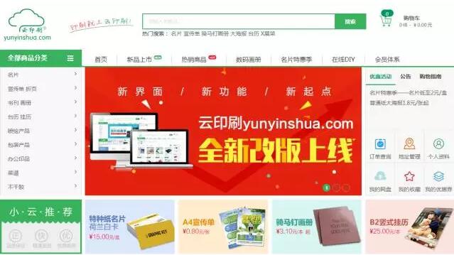 元旦來(lái)臨之際,云印刷網(wǎng)(www.alexwohler.com)經(jīng)過(guò)三個(gè)多月緊鑼密鼓地設(shè)計(jì)、修改、測(cè)試,終于趕在2016年的尾巴完成了華麗轉(zhuǎn)身,成功改版上線(xiàn),以嶄新的面貌面向大家,站在新的起點(diǎn)為用戶(hù)帶來(lái)更卓越的購(gòu)物體驗(yàn)。