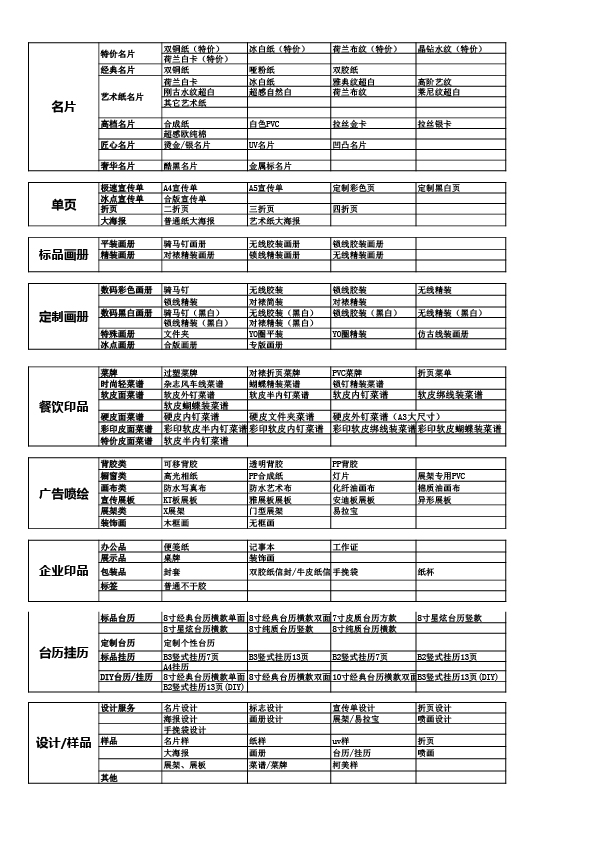 最新產(chǎn)品分類(lèi)表(供參考熟悉)