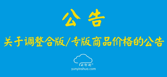 ? ? ? ?由于受原紙成本及輔料價(jià)格急劇上漲而導(dǎo)致生產(chǎn)成本的上升,為穩(wěn)定持續(xù)地向客戶提供高品質(zhì)的產(chǎn)品,自2017年3月10日起,云印刷網(wǎng)將對(duì)合版商品(包含合版單張、合版騎馬釘畫冊(cè)、合版無(wú)線膠裝畫冊(cè))和專版商品的價(jià)格進(jìn)行適當(dāng)上調(diào),上調(diào)金額以屆時(shí)網(wǎng)站顯示的價(jià)格為準(zhǔn)。
